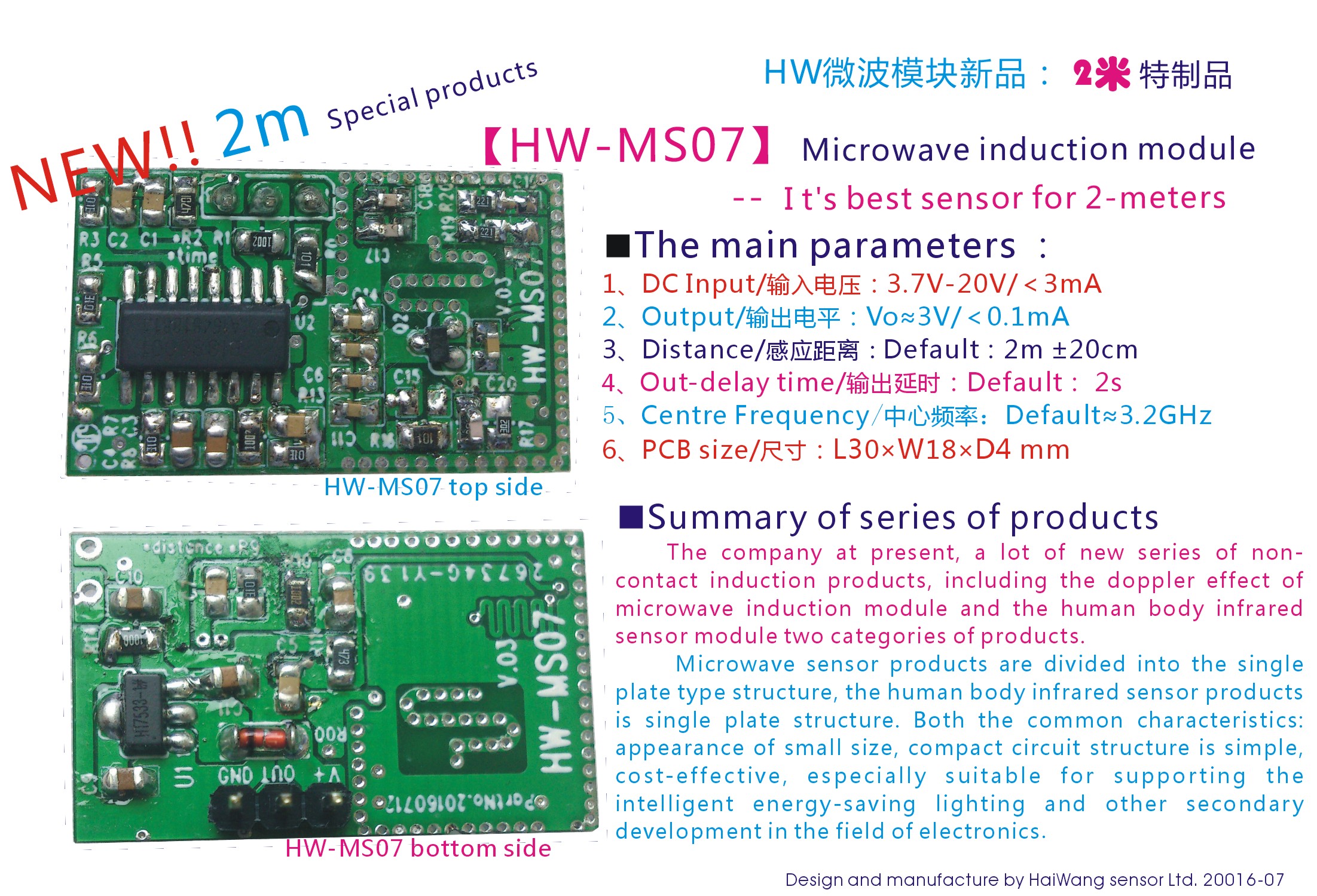 這是我方早期與深圳HW公司技術(shù)合作的產(chǎn)品,屬于高端的微波感應(yīng)模塊,可供有實際需要的廠商及客戶,作為智能類照明等領(lǐng)域產(chǎn)品的二次開發(fā)選型使用!(詳細的技術(shù)規(guī)格與具體的應(yīng)用方案,請與我方直接接洽并深入合作!)